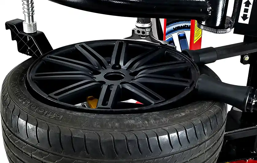 Wheel lift is ergonomic and fast, reducing operator effort in cases of large and heavy wheels and avoiding the laborious process of manually lifting tires