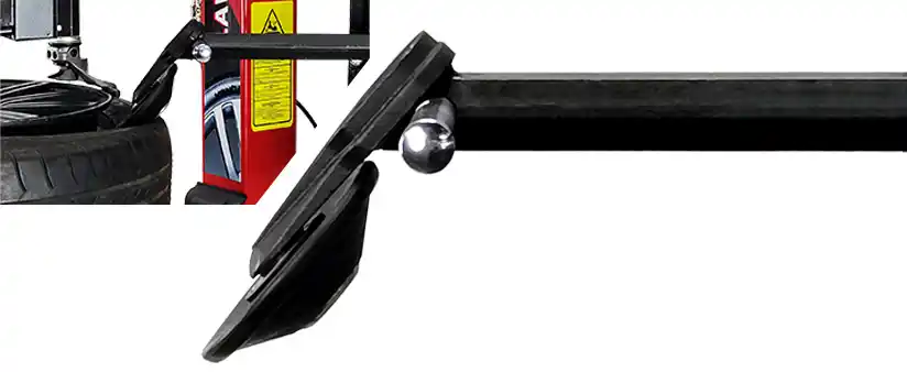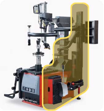 The auxiliary press bead breaker separates the tire and rim to improve tire dismount efficiency.