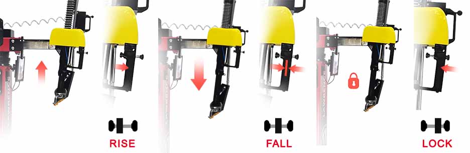 3. Mounting head reset quickly and saving both time and labor for mounting or dismounting the same size tires.